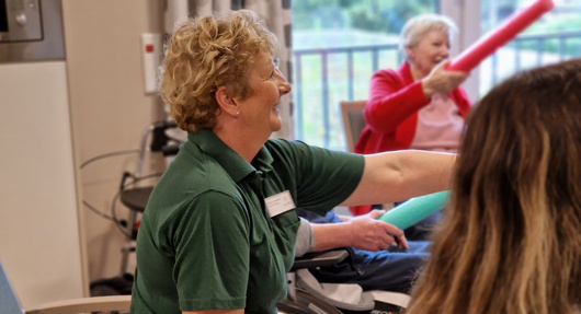 „Gemeinsame Aktivitäten, Unterstützung im Alltag, Spiele oder auch ein gutes Gespräch prägen die Arbeit der Betreuer*innen. Ich durfte unter anderem eine sportliche Stunde begleiten und war begeistert, wie motiviert und konzentriert alle bei der Sache waren. Die anschließende kleine Massage mit den Igelbällen an Schulter und Armen haben die Teilnehmer*innen entsprechend sehr genossen und ich konnte erleben, was für eine vertraute und fröhliche Gemeinschaft hier entstanden ist. Vielen Dank noch einmal an das Team in Melle, dass Sie mich so herzlich aufgenommen und eingebunden haben!“