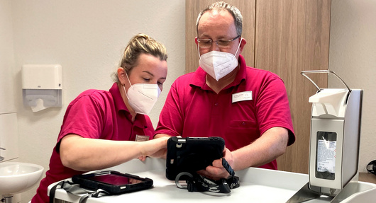 Unsere Tablets sind überall in der Einrichtung mit dem Internet verbunden und ermöglichen eine mobile Pflegedokumentation - Und das in Echtzeit am Bewohner, bei Bedarf auch mithilfe der Sprachaufzeichnung.