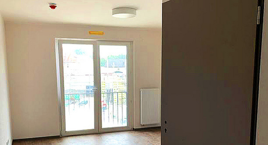 Fertiger Boden bedeutet auch Beginn der Malerarbeiten: Unter anderem wurden im Treppenhaus sowie in diversen Bewohnerzimmern im ersten und zweiten Obergeschoss Farbe an die Wand gebracht. Miteinhergehend wurde in diesen Räumen die Feininstallation abgeschlossen, weshalb einige Bereiche nahezu fertig sind und nur noch Kleinigkeiten bedürfen.