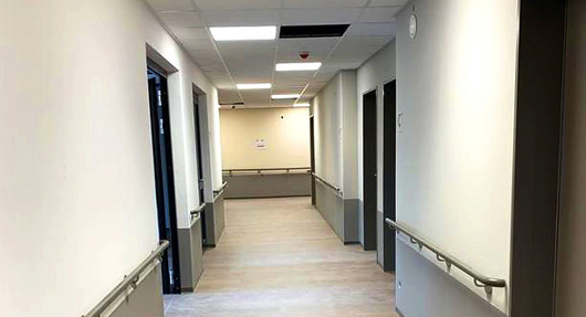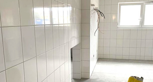 In den letzten zwei Wochen konzentrierten sich die Bauarbeiten auf den Innenbereich, weshalb dort große Fortschritte zu erkennen sind. In vielen Räumen wurde damit begonnen die Deckenplatten anzubringen, sodass diese nicht mehr nach Baustelle aussehen. Zudem wurden die Bodenbeläge nahezu vollständig, dazu gehören die Fliesen im Flur, im Pflegebad und in der Wäscherei.