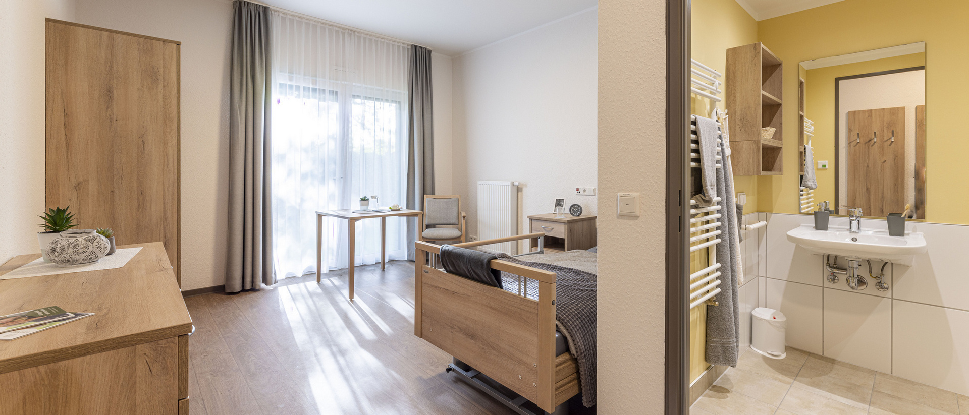 In unseren Seniorenresidenzen stehen hochwertige Pflege und individuelle Versorgung im Mittelpunkt. Ob Kurzzeit-, Verhinderungs- oder Langzeitpflege – bei uns finden Bewohner*innen ein Zuhause. Unsere modern ausgestatteten Einzelzimmer erfüllen höchste Standards und wer es noch komfortabler wünscht, kann sich für ein Upgrade in ein Komfortzimmer entscheiden.